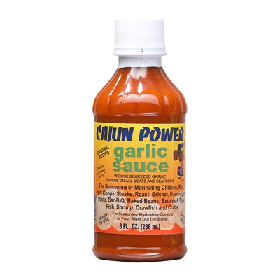 This sauce is what made Cajun Power famous. Chef Caro's original recipe garlic sauce is not hot, but perfectly seasoned. Every 8 oz. bottle has two ounces of squeezed garlic in it. It's so versatile you can use it for cooking, marinating, seasoning, or pouring right out of the bottle on your favorite foods. It tenderizes meat and makes a beautiful brown gravy. This original recipe garlic sauce has been imitated by many but never matched. With a rich flavor, it is the foundation of every great Cajun Power product! As an added note, this is the original label that was used when the Original Recipe Cajun Power Garlic Sauce hit the scene at the start of Chef Caro's dream. It is packed with information because there's just so much you can do with it. There's a recipe on the side of that label, Cajun Power BBQ Shrimp. It is dynamite and you just have to try it! So easy, his children were cooking this recipe all over the United States while standing on a stool just to reach the stove. The aroma of great Cajun food hits the air as soon as you add the sauce. Talk about the "Gris Gris!"